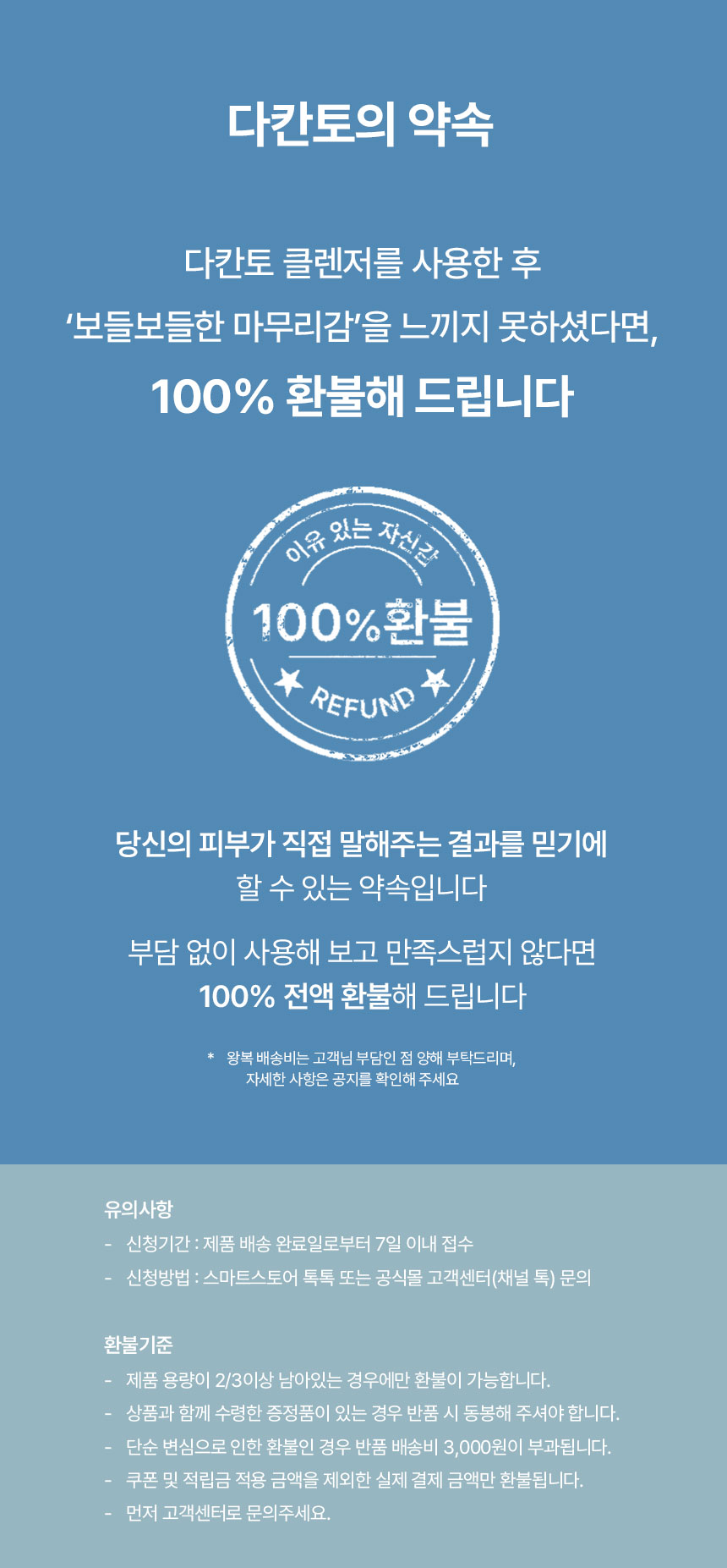 - 반품접수 기한이 지난 경우, 제품 및 패키지 훼손, 사용 흔적이 있는 제품은 교환/반품이 불가합니다.