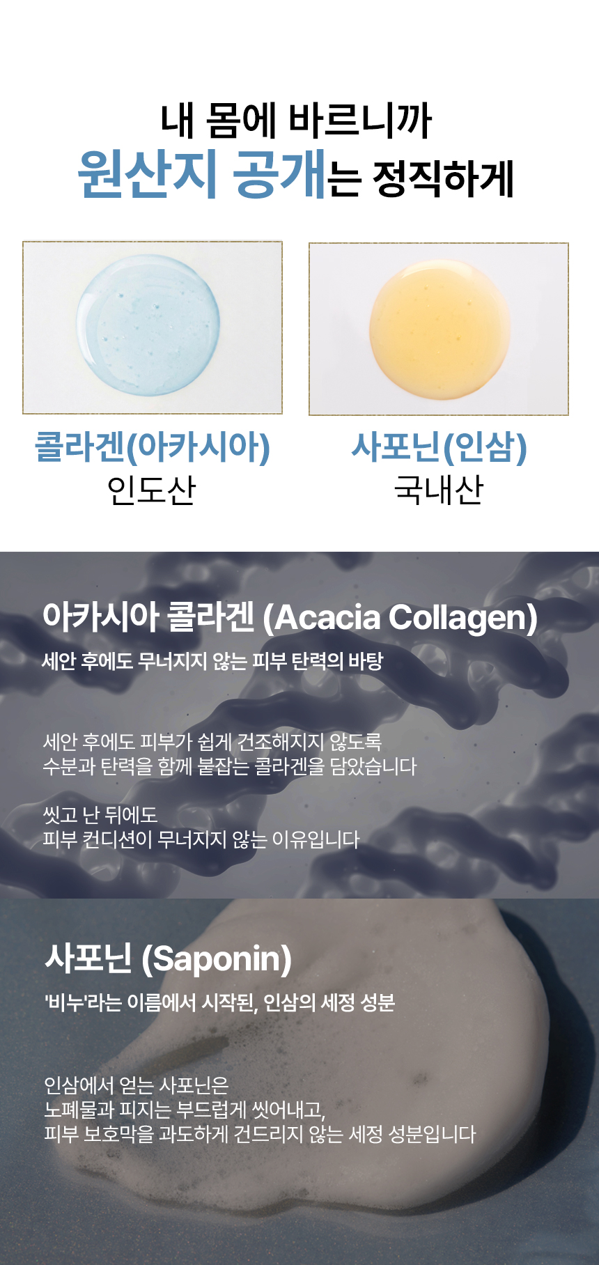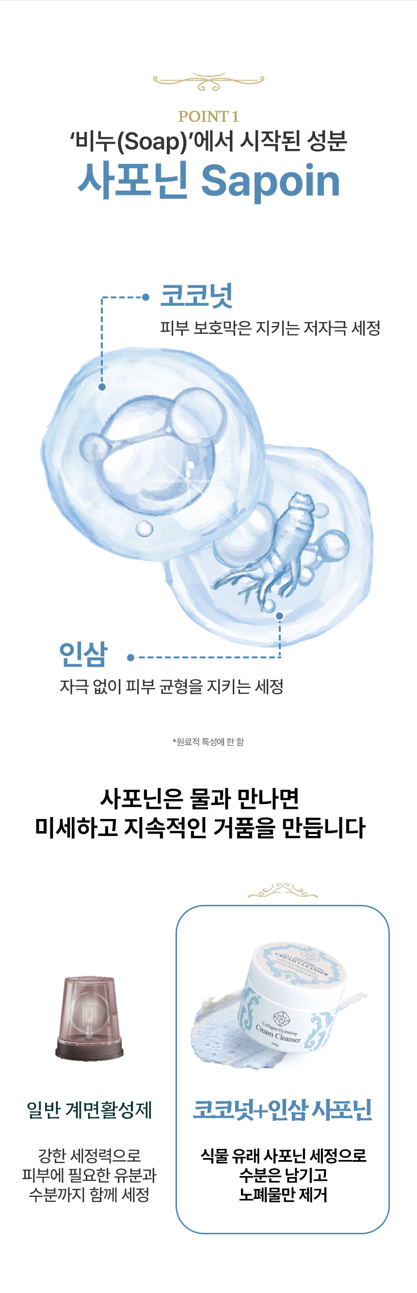 - 국내 금산 인삼의 사포닌 성분으로 수분은 남기고, 노폐물만 쏙-