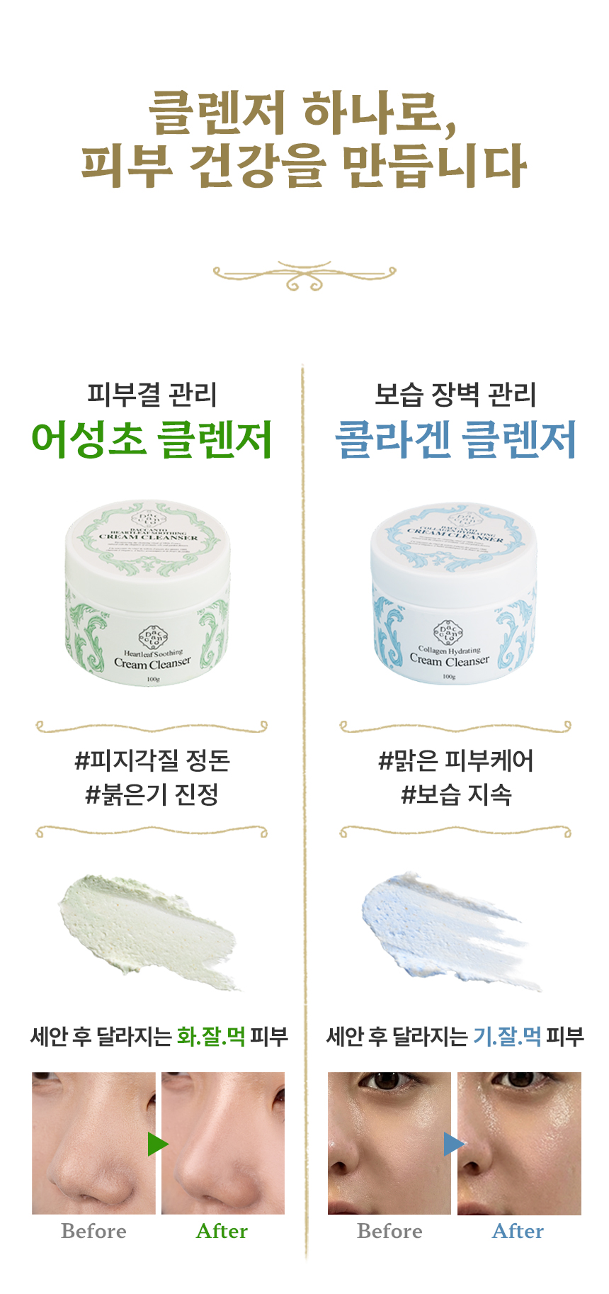 어성초, 티트리, 캐모마일 함유로 피부 진정&촉촉한 크림 제형으로 세안 후 피부 당김 없이 촉촉한 수분 클렌징!